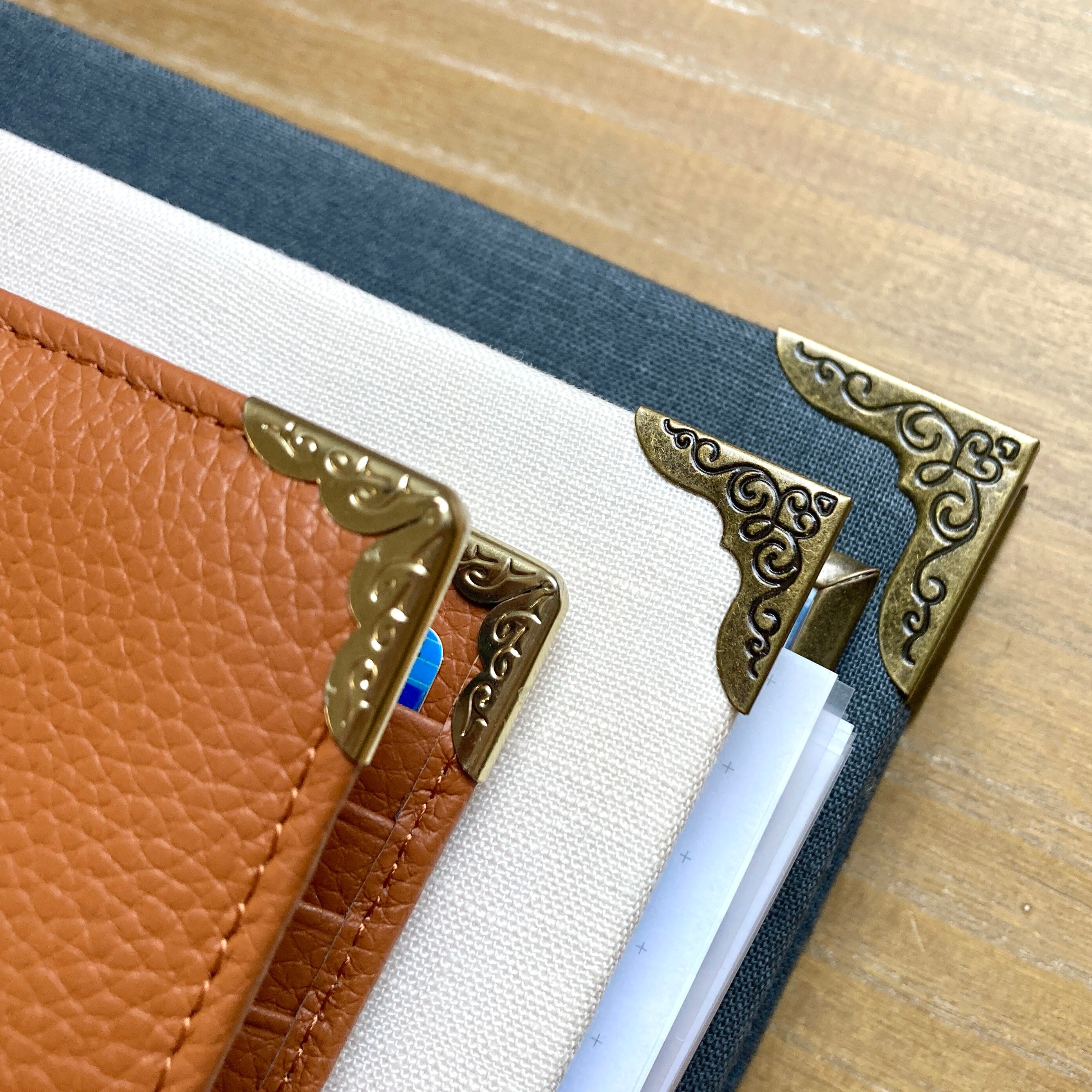 小物の角を包むことができるパーツです。 販売単位:4個 —————————————————— [詳細] Mサイズ…厚み4mm前後の素材にちょうど良いです。 Lサイズ…厚み6mm前後の素材にちょうど良いです。