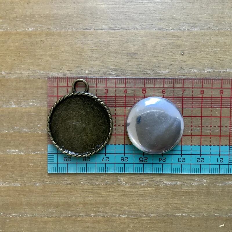 チャームを制作できるセッティングです。 中央にパーツを作ってはめ込むことで、刺繍や布、ガラスカボションなどをチャームにすることができます。 —————————————————— 用途に合わせて別売りの芯や、ガラスカボションを一緒に購入することができます。 セッティング部分の大きさ:30mm パーツ全体の大きさ:34mm(カン除く) 厚み1.5mm カンの内径 5mm (専用アルミ芯:直径29.5mm) —————————————————— ☘️布をつかったチャームの作り方 https://www.cherin-cherin.com/16527/ ☘️ガラスカボションを使ったチャームの作り方 https://www.cherin-cherin.com/3978/ —————————————————— 特殊な布など付属の芯が合わない場合は、土台から作ることも可能です ☘️チャームを台紙から作ってみよう https://www.cherin-cherin.com/11454/